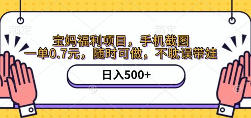 今天给大家带来一个 宝妈福利项目,手机截图,一单0.7元,随时可做,不耽误带娃,日入500+