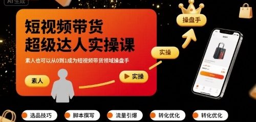 短视频带货超级达人实操课,素人也可以从0到1成为短视频带货领域操盘手